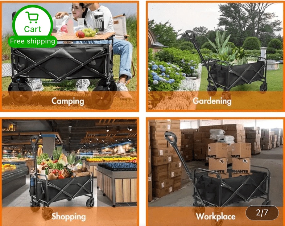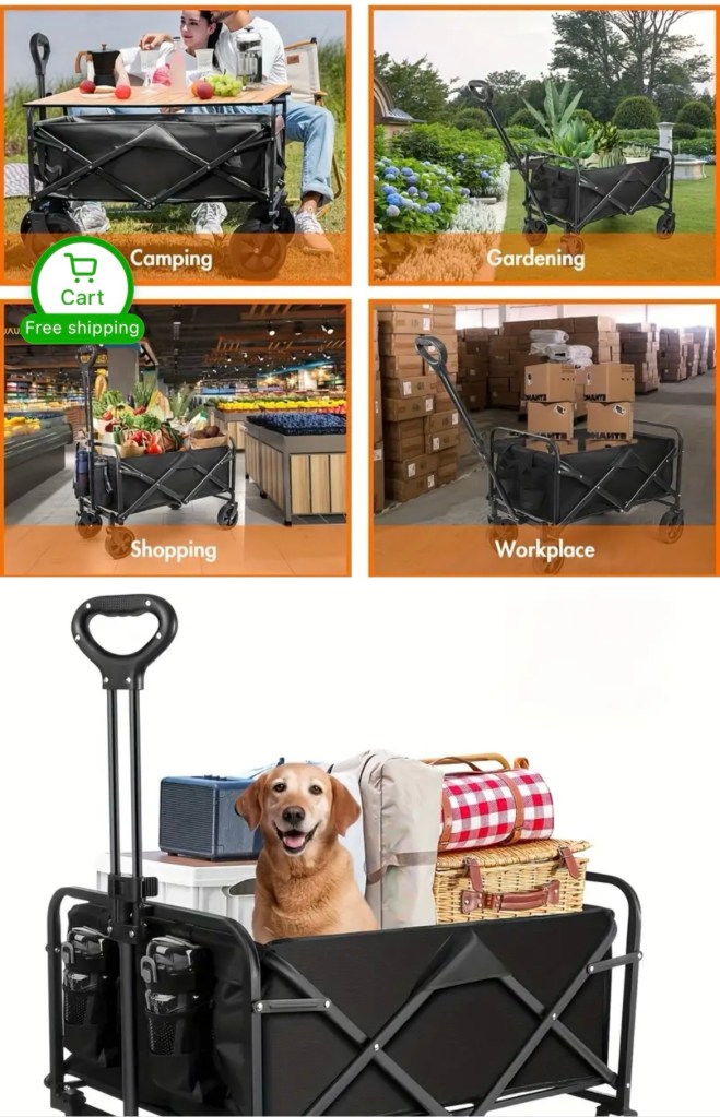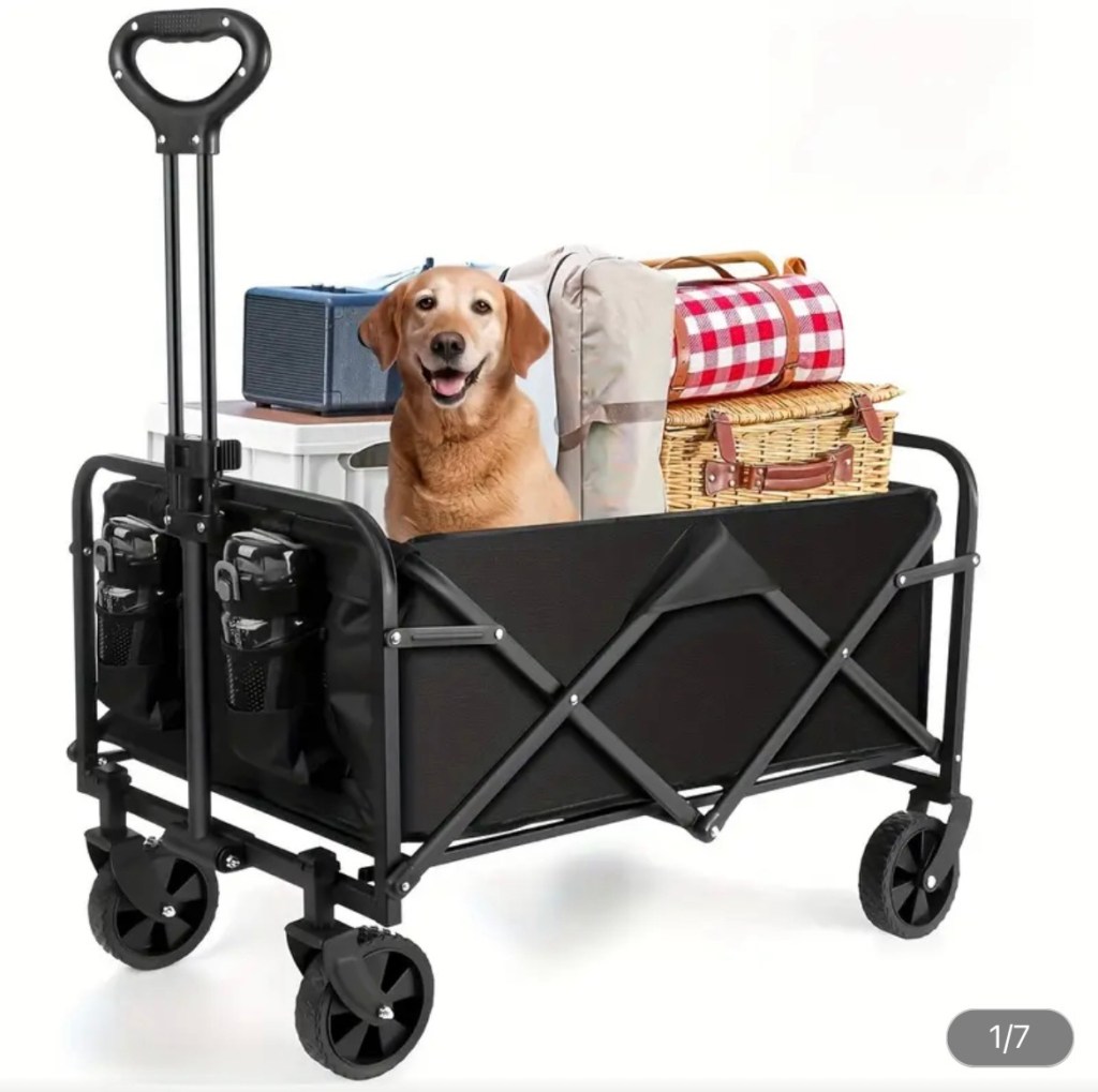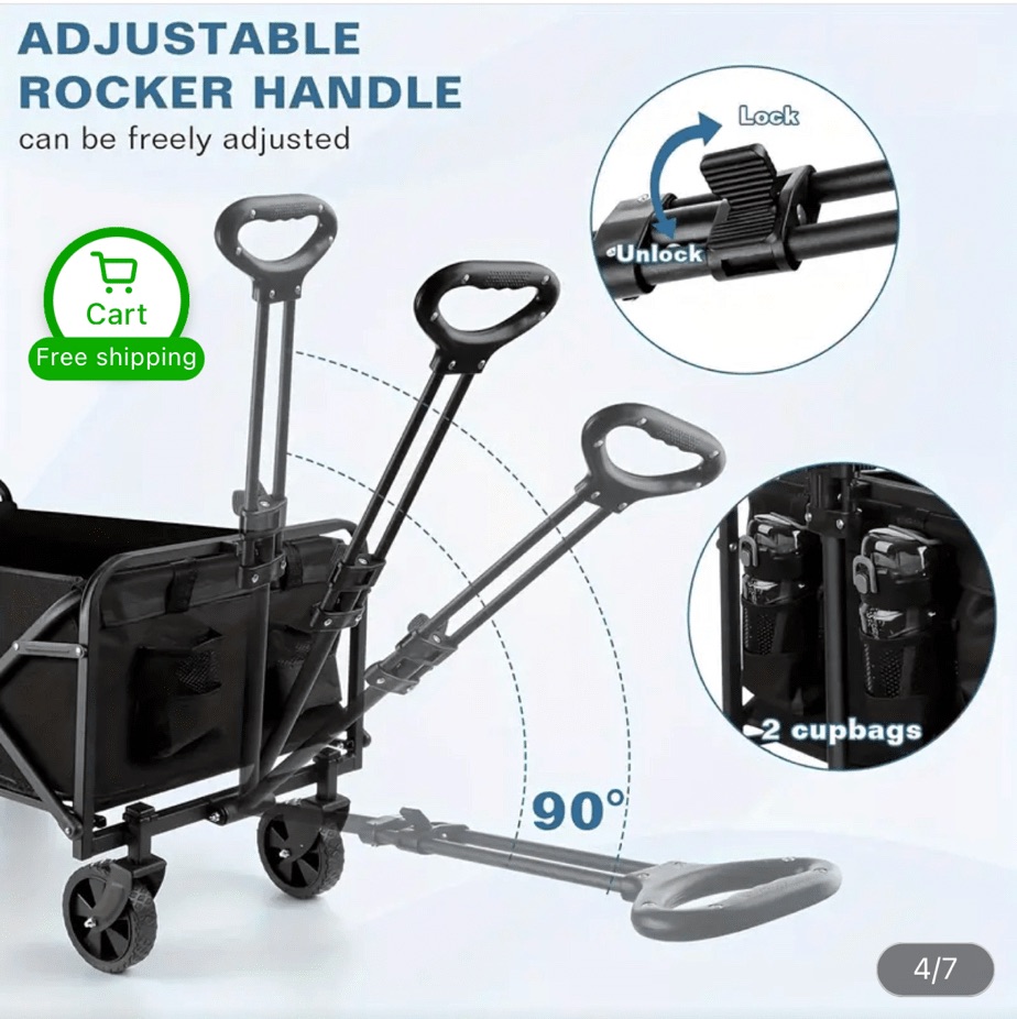 The model we’re highlighting is the 1pc Wagons Carts Foldable with Cargo Net & Adjustable Handle, boasting a 300 lbs capacity with wheels and drink holders. It’s a versatile, sturdy, and practical solution for your beach day needs.